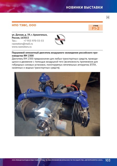 Поршневой оппозитный двигатель воздушного охлаждения российского про-