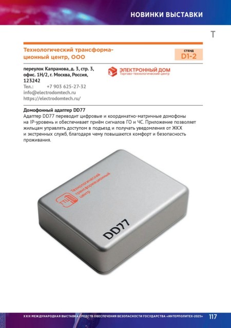 Адаптер DD77 переводит цифровые и координатно-матричные домофоны