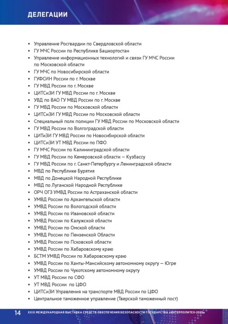 14 XXIX МЕЖДУНАРОДНАЯ ВЫСТАВКА СРЕДСТВ ОБЕСПЕЧЕНИЯ БЕЗОПАСНОСТИ ГОСУДАРСТВА «ИНТЕРПОЛИТЕХ-2025»