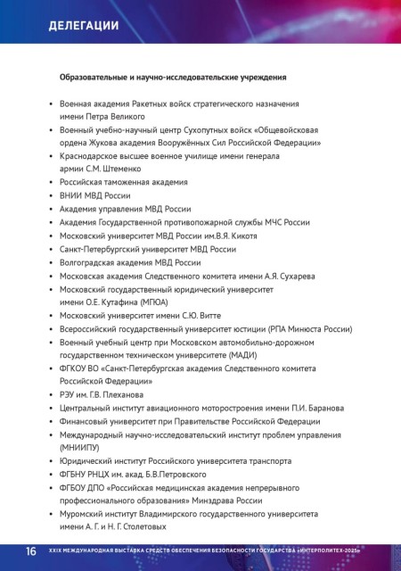16 XXIX МЕЖДУНАРОДНАЯ ВЫСТАВКА СРЕДСТВ ОБЕСПЕЧЕНИЯ БЕЗОПАСНОСТИ ГОСУДАРСТВА «ИНТЕРПОЛИТЕХ-2025»