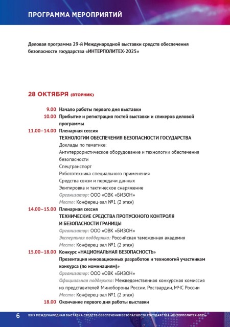 6 XXIX МЕЖДУНАРОДНАЯ ВЫСТАВКА СРЕДСТВ ОБЕСПЕЧЕНИЯ БЕЗОПАСНОСТИ ГОСУДАРСТВА «ИНТЕРПОЛИТЕХ-2025»