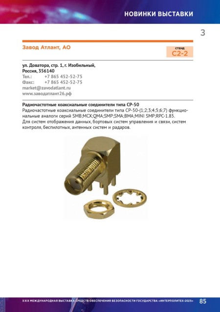 нальные аналоги серий SMB;MCX;QMA;SMP;SMA;BMA;MINI SMP;RPC-1.85.