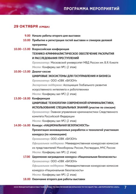 XXIX МЕЖДУНАРОДНАЯ ВЫСТАВКА СРЕДСТВ ОБЕСПЕЧЕНИЯ БЕЗОПАСНОСТИ ГОСУДАРСТВА «ИНТЕРПОЛИТЕХ-2025»